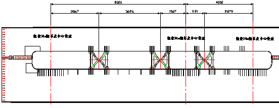 架橋機架完32米梁后,接著架設24米梁時,拆除主梁后起重小車縱移范圍滑道內的支撐架,通過縱移油缸和導桿裝置以倒頂的方式將后起重小車前移8m,恢復主梁內支撐架,其余架梁作業程序相同。其它跨度的變跨方式同上。不同跨度的支撐架位置及后起重小車位置示意如下。