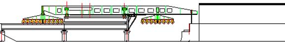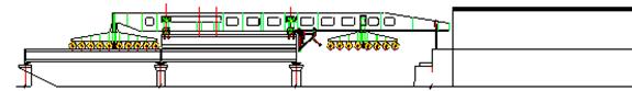 2、按前述正常架梁作業程序使輔助支腿上橋臺并準確就位: