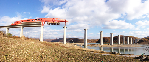 運架一體機(jī)適用于山區(qū)鐵路客運專線(橋隧相連)20m、24m、32m雙線整孔混凝土箱梁(含曲線梁、現(xiàn)澆梁前后的箱梁)的架設(shè);能在鐵路客運專線混凝土箱梁預(yù)制場吊運,并能夠把混凝土箱梁從預(yù)制場地通過便道、路基、橋梁(包括鋼結(jié)構(gòu)連續(xù)梁、單跨及多跨連續(xù)現(xiàn)澆梁等)、涵洞運至架梁工位完成架梁作業(yè),而且對路基及橋面不造成任何損害;可在不需要輔助設(shè)施的情況下,利用設(shè)備自身功能和輔具,進(jìn)行工地轉(zhuǎn)移、調(diào)頭、吊運混凝土箱梁穿越鐵路客運專線雙線隧道,并能做到在作業(yè)過程中不會和已完成工程發(fā)生碰撞,方便快捷的完成孔梁之間的架設(shè)任務(wù)。